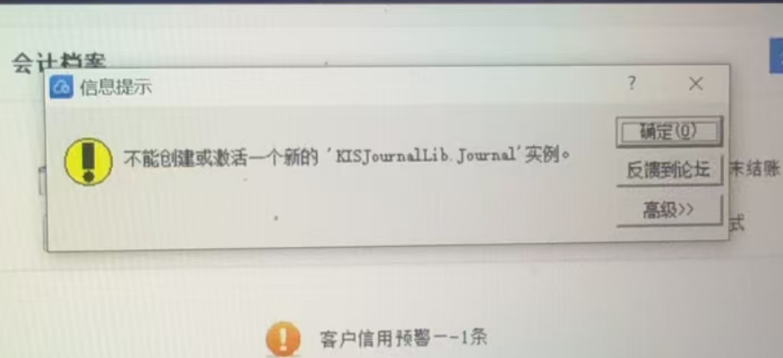 打开金蝶专业版后提示不能创建或激活一个新的’KISJournalLib.Journa1’实例。