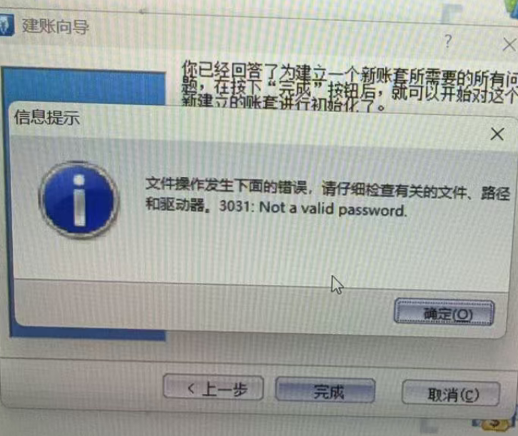 金蝶KIS迷你版 标准版新建账套 提示文件操作发生下面的错误,请仔细检查有关的文件、路径和驱动器.3031: Not a valid password.