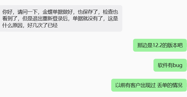 金蝶KIS 专业版12.2出现丢单情况,单据保存重新登录后,发现单据没有了