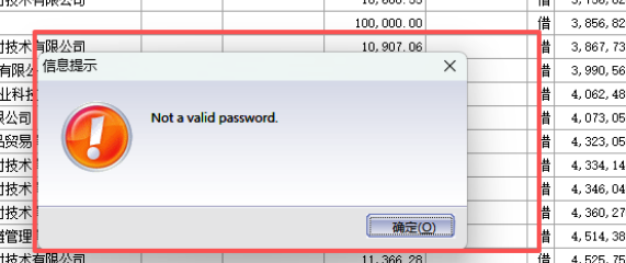 金蝶专业版导出数据提示“Not a valid password. ‘’不是有效密码