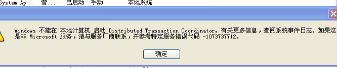 Windows 不能在 本地计算机 启动 Distributed Transaction Coordinator。有关更多信息,查阅系统事件日志。如果这 是非 microsoft 服务,请与服务厂商联系,并参考特定服务错误代码 -1073737712.